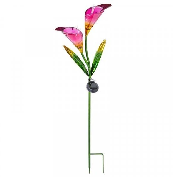 - Beautiful hand painted glass-petalled flower design stake light